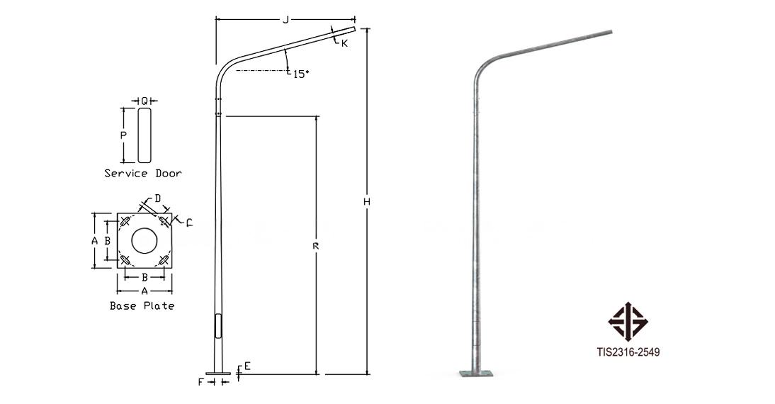 Received TIS. 2316-2549: Galvanized steel pole standard for lighting electricity. Standard ASTM A123-89a Galvanizing System