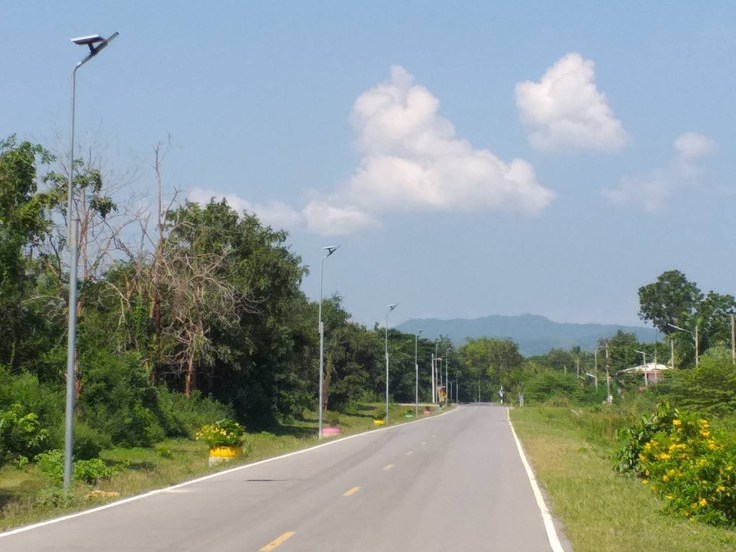 ผลงานการติดตั้งเสาไฟถนนความสูง 6 เมตร กับ โคมไฟถนนโซล่าเซลล์ LED ENRICH 100W